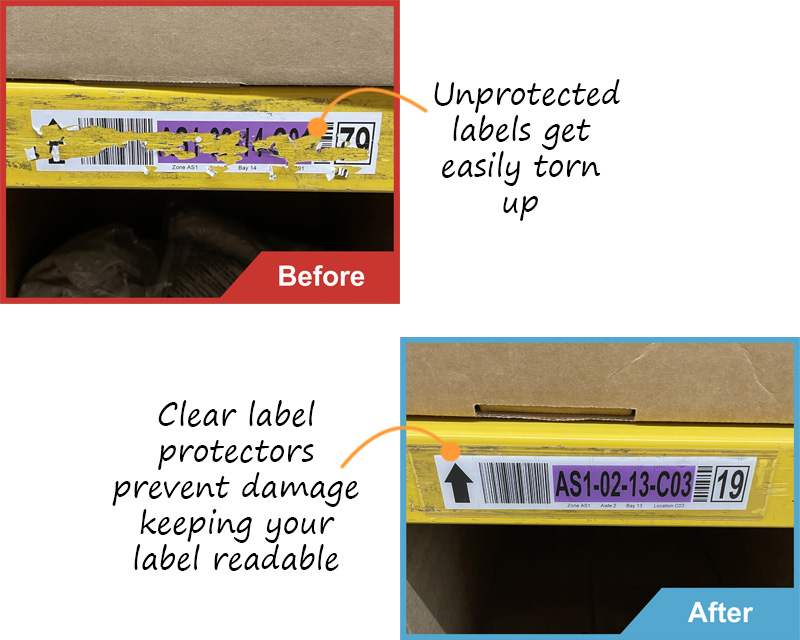 - ⢠Perfect for labels on warehouse shelves. Label protectors are even durable enough to be put on the floor! Clear label protectors can withstand abuse from forklifts and heavy foot traffic.