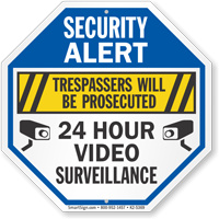 Smile! You're on camera. Our range of 24-hour surveillance signs let you protect your personal property from thieves, in vinyl or aluminum.