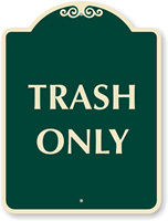 According to the U.S. Census, the average person generates 4.5 pounds of trash per day. Trash Only Signs are a friendly reminder of where to discard waste.