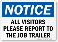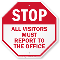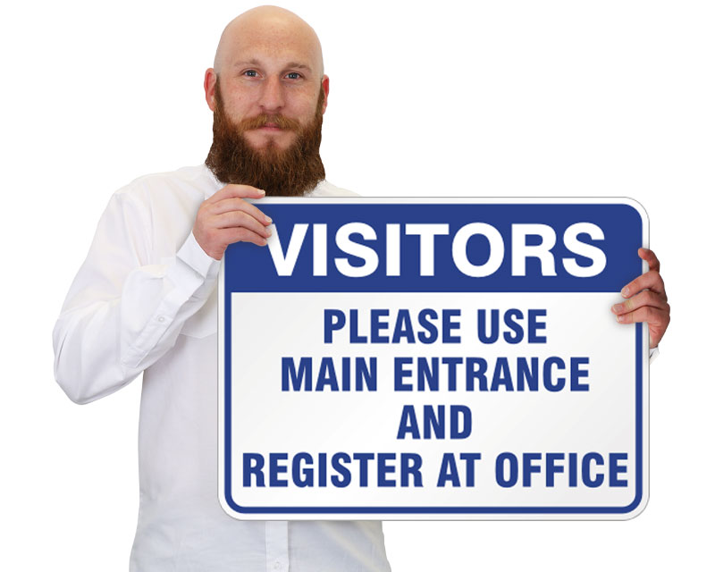 • • Our varied selection of Visitors Must Register Signs and Visitors Must Report To Office Signs allows you to instruct people to sign in, point them in the right direction, or set rules while visitors or vendors are on your property.