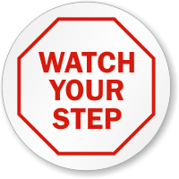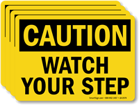 Work floors can be wet, slippery, and uneven at times and can cause serious workplace accidents. Our bold and legible Watch Your Step Labels help prevent slip, trip, and fall accidents in your facility. Since labels are inexpensive and easy to apply, many industries prefer them over signs. Their strong adhesive backing ensures they do not come off the surface.