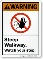 “Fall” is the leading cause of workers’ death in construction sector. The Center for Disease Control (CDC) also says that one in five falls causes a serious injury like a broken bone or head injury. Use Watch Your Step Signs to reduce the risk of slip, trip, and fall accidents and lost work time in your facility. Give a heads up to employees and visitors with a caution sign, or tell them to look down, to prevent an injury. Not all surfaces (or falls) are smooth!