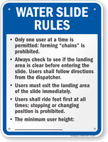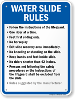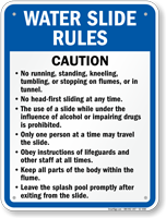 Don't think of these signs as fun blocks--think of them as techniques to help you have an even better slide! Enhance safety and fun with Water Slide Rules Signs!