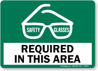 Safety glasses signs are required by OSHA at the entrances to all work areas where employees are exposed to potential eye hazards. This includes, but is not limited to, areas with flying particles, molten metal, liquid chemicals, acids or caustic liquids, chemical gases or vapors, or potentially injurious light radiation.