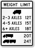 Prevent the deterioration of your roads by clearly establishing and marking maximum weight limits. Our affordable, high quality weight limit signs meet or exceed Federal MUTCD guidelines where noted.