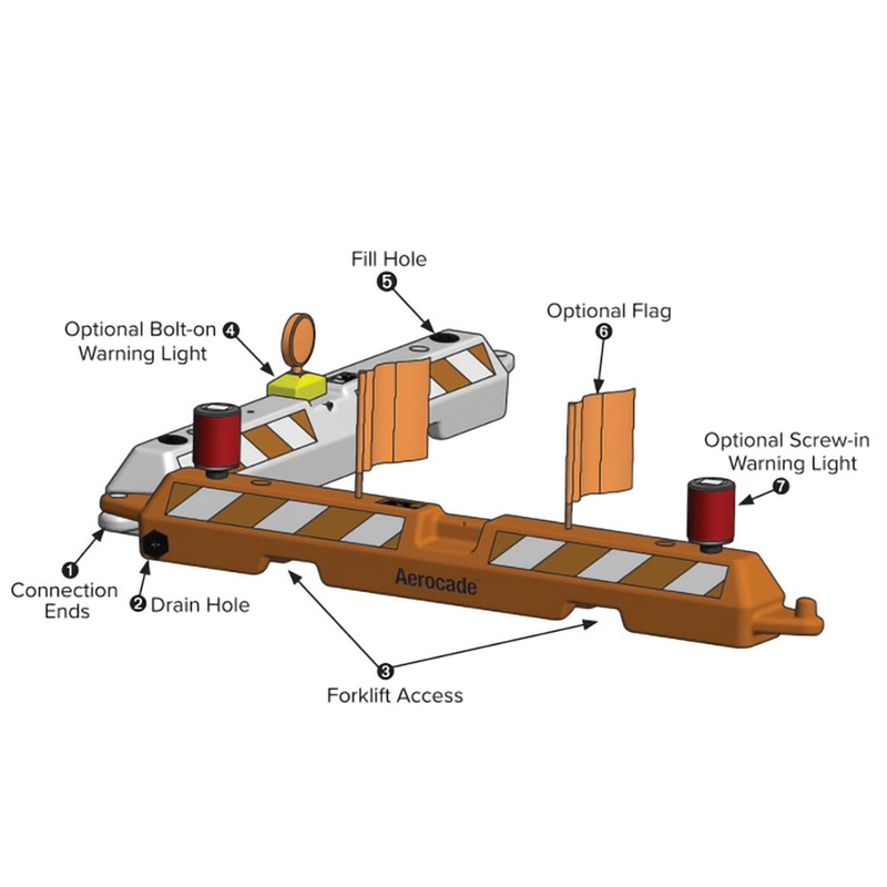 This collapsible channelization device is specifically used for construction and maintenance on airport runways and taxiways. This highly versatile barricade can be interconnected at its ends and can be accessorized with flags and warning lights. Designed to FAA Advisory Circular 150/5370-2G. We offer multiple shipping options to meet your needs and budget including one day direct factory shipping, contact us for more information.